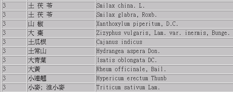 Go back to the Chinese Herb Dictionary to see explanations with links,and please enable your browser to read BIG5 traditional Chinese.